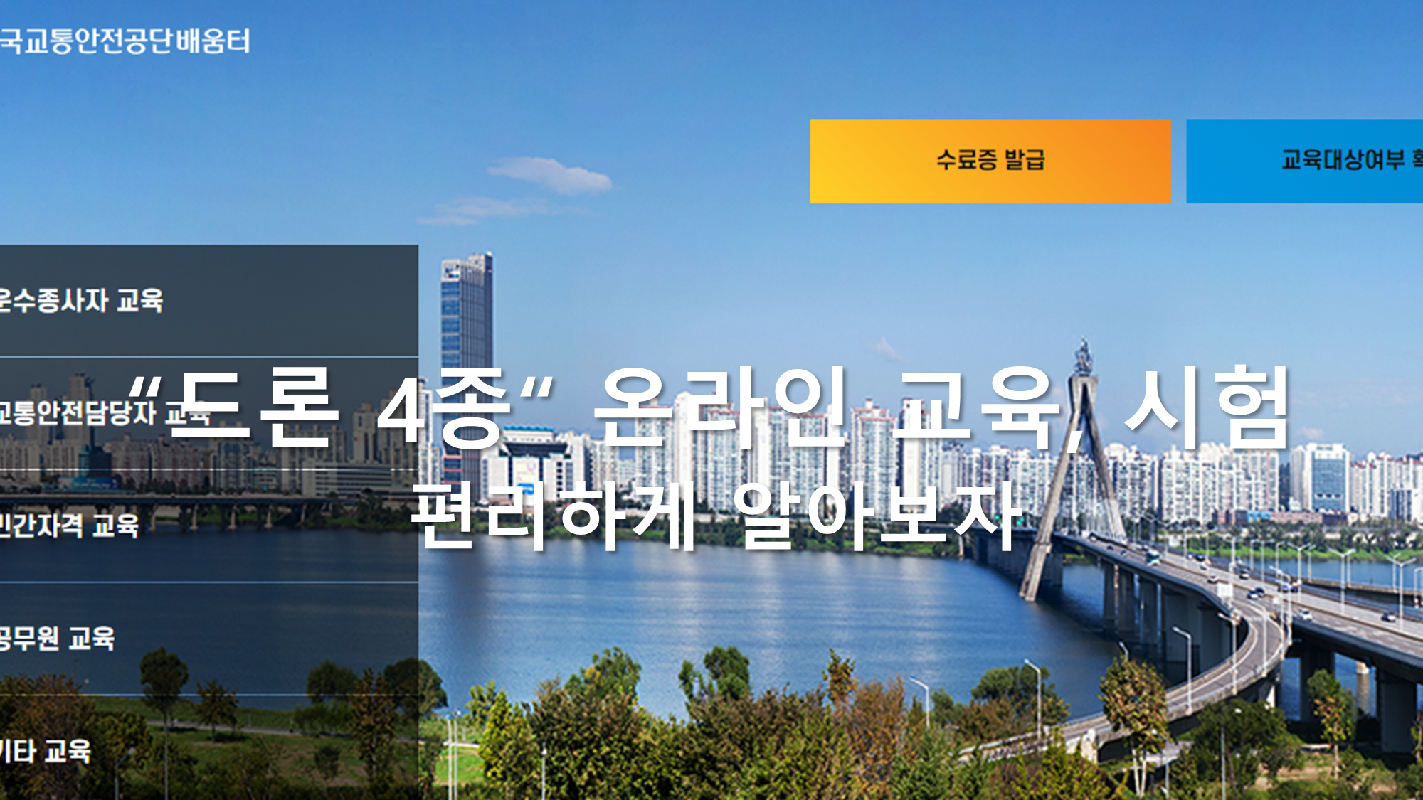 하지만 이젠 새로운 한국교통안전공단 배움터에서 온라인 교육 시청 및 학과시험 합격을 통해 드론 4종 자격증 취득을 하실 수 있습니다.
