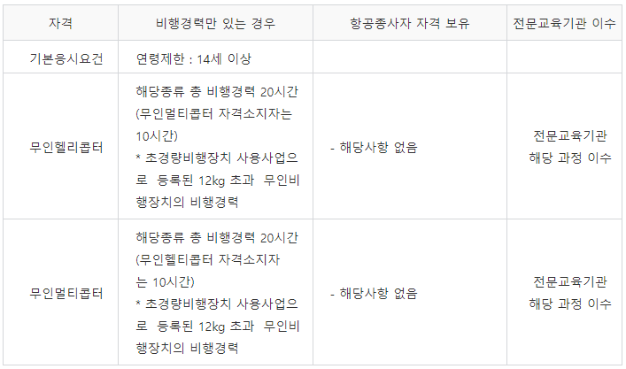 시험에 응시하기 위해서는 기본연령 14세 이상 및 취득을 원하는 기체의 해당 자격요건인 비행경력 20간은 필수로 갖고 있으셔야 공단에 응시자격요청이 가능하십니다.