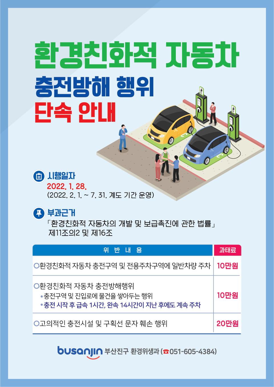 개정된 "환경친화적 자동차의 개발 및 보급 촉진에 관한 법률" 및 같은 법 시행령이 지난 1월 28일 시행됨에 따라 모든 공용 전기차 충전시설로 충전 방해 행위 단속이 확대됐다.
