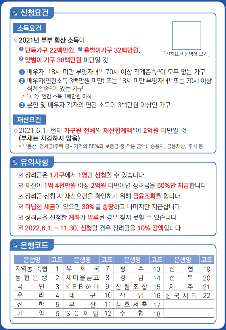 - 가구원 모두가 2021.6.1. 현재 소유하고 있는 재산 합계액이 2억 원 미만이어야 합니다.