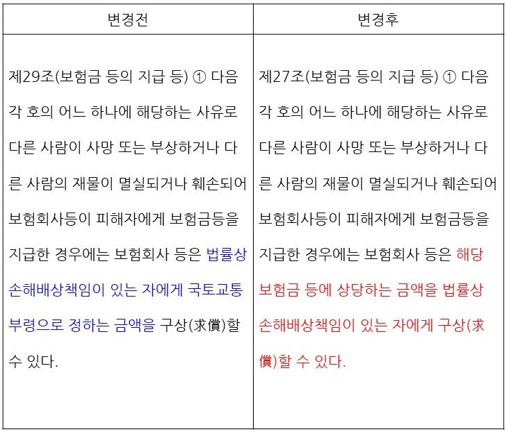 오늘은 국토교통부에서 개정한 "자동차 손해배상 보장법"에 대해 알아보도록 하겠습니다